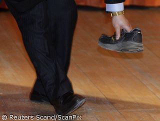 Moments before Chinese Premier Wen Jiabao becomes the latest leader to dodge shoes thrown at him by a protester. more »