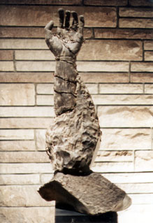 Vandals splashed white paint on bronze figures along the steps leading to the stele and white-painted a large Nazi swastika on the upright pillar.