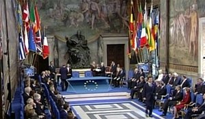 На встрече европейских президентов и премьеров может пойти речь также о будущей структуре еврозоны, включая создание для нее отдельного бюджета, а также о финансовых проблемах Греции.