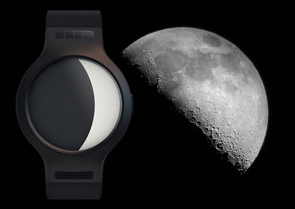 Moonwatch clock is designed to determine the relation between lunar cycle and human emotions. This is a new concept of time, giving people a possibility to think and understand their mood swings in everyday life on Earth.