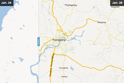 „Google Maps“ atsirado išsamus Šiaurės Korėjos žemėlapis. Iki šiol žymi šalies teritorija buvo vaizduojama kaip balta dėmė, kurioje buvo pažymėta tik sostinė Pchenjanas.