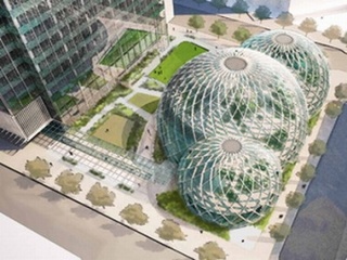 Po 6 metų didžiausia JAV internetinė parduotuvė „Amazon“ kraustysis į visiškai naują būstinę, pastatytą pagal ekskliuzyvinį projektą. 6 kvadratinių kilometrų pastatą sudarys 3 tarpusavyje sujungtos stiklo sferos, kurių viduje planuojama įrengti žaliąsias zonas, kurios dydžiu prilygs tikriems parkams.