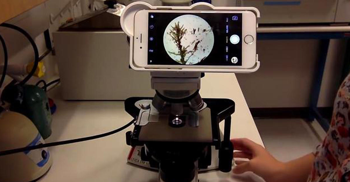Amerikiečiai pritaikė išmanųjį „Apple“ telefoną „iPhone“ mokyklų laboratorijoms. Gana primityvus įrenginys, kurio sudėtingiausia dalis yra linzė, sujungia mikroskopą ir populiarų tarp jaunimo išmanųjį įrenginį.