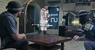 Savo koncepciją „Microsoft“ pademonstravo parodydama įspūdingą papildytosios realybės akinių „HoloLens“ vaizdo reklamą. Filmuke futbolo sirgaliai stebi žaidimą kambaryje ant desertinio staliuko, o virtualios futbolininkų kopijos įsiveržia į kambarį išlauždamos sienas.