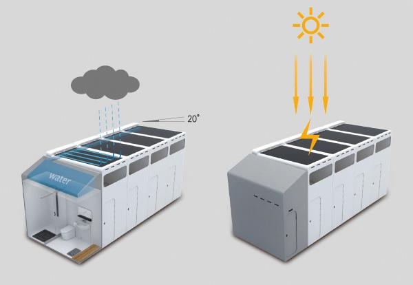 Vanduo ir energija būtų gaunami iš gamtos, t. y. panaudojant saulę ir lietų. Todėl mobiliam viešbučiui nereikėtų elektros laidų ar vandentiekio sistemos.