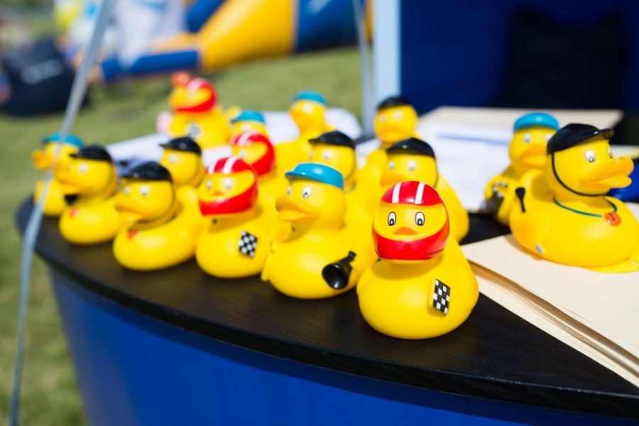 «Утиные гонки» организуются в благотворительных целях во всем мире. До сих пор самые крупные гонки прошли в 2009 году в Великобритании, когда в воде было 205 тыс. утят. «Утиные гонки» в Литве ежегодно проводит вильнюсский клуб Rotaract.