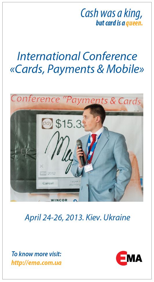 24-26 апреля 2013 в Киеве пройдет XIII Международная конференция “Payments, Cards & Mobile”.