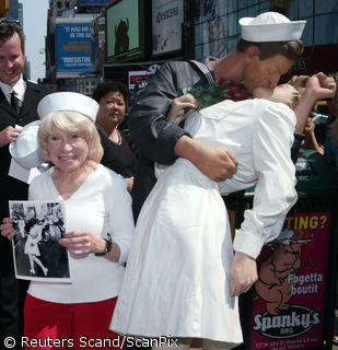 Hundreds of couples lock lips to recreate the famous kiss that marked the end of World War II 65 years ago. more »