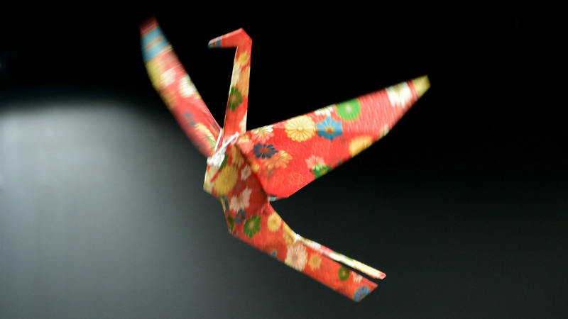 Традиционное оригами — бумажный журавлик — благодаря небольшому энергоэффективному микрокомпьютеру от японской компании «Ром», теперь может летать, взмахивая крыльями. «Журавлик» управляется дистанционно, может парить в течение пяти минут и весит всего 31 грамм. И к тому же, в отличие от остальных дронов, он красив.