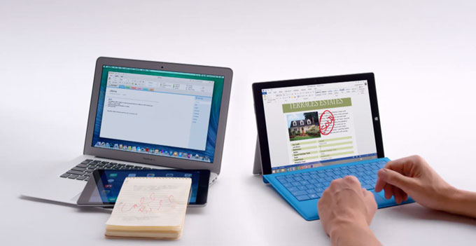 Не успел еще позабыться недавний ролик-противопоставление Siri и Cortana, как компания из Редмонда переместила фокус своей рекламной кампании на MacBook Air и собственный планшетник Surface Pro 3. В центре внимания оказались сенсорный дисплей и удобная многозадачность, а также возможности расширения.
