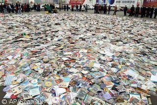Naikinami policininkų konfiskuoti piratiniai vaizdo diskai (Kinija)