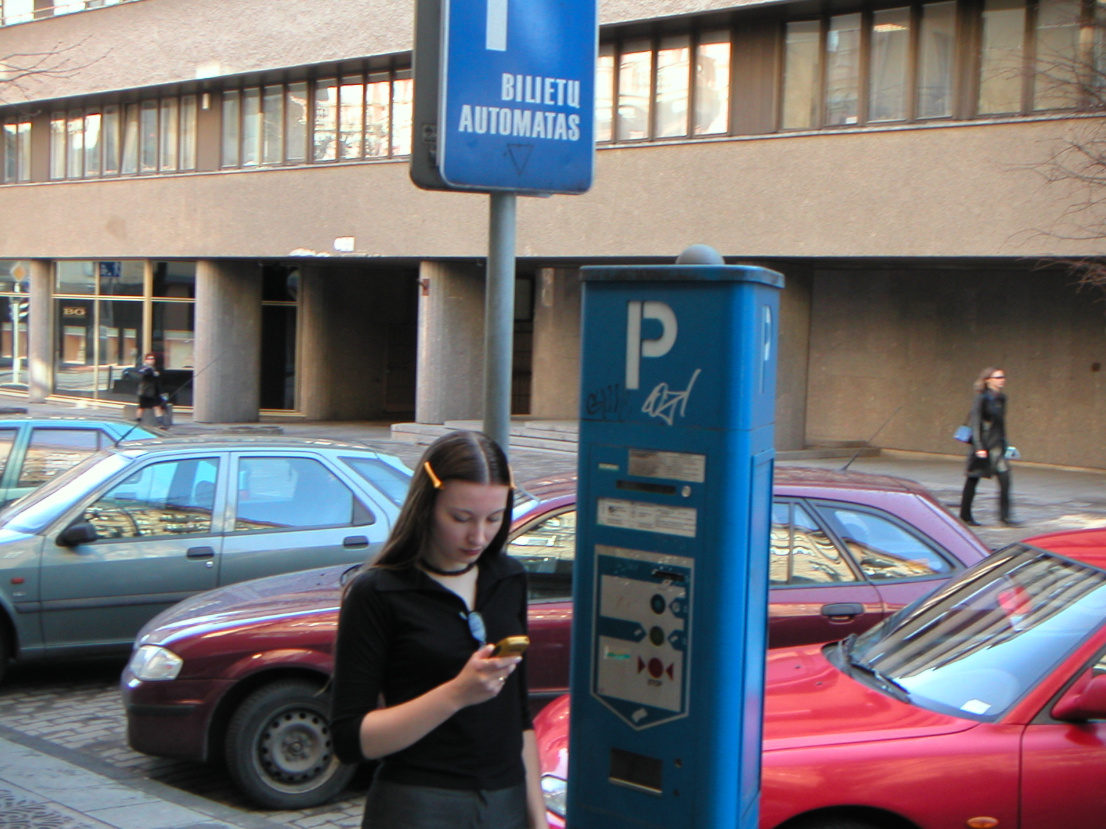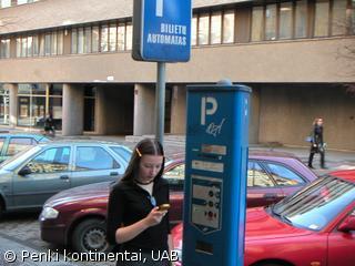 В Вильнюсе автолюбители также могут оплатить услуги за парковку при помощи SMS – сообщения. Подобные услуги своим клиентам предоставляют крупнейшие операторы связи – “Omnitel” и “Bitė”. Чтобы воспользоваться этой услугой, необходимо в салонах этих фирм попросить специальные наклейки, которые приклеиваются на лобовое стекло машины. Дальше автопользователь регистрирует штрих-код наклейки и высылает SMS с данными госномера автомобиля и продолжительностью стоянки (0,5, 1, 2 часа). Подтверждением оплаты является подтверждающее оплату SMS – сообщение.
