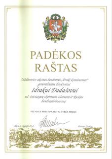 Отмечающее 35-летие coобщество Viltis вручило Penki kontinentai Group благодарственную грамоту