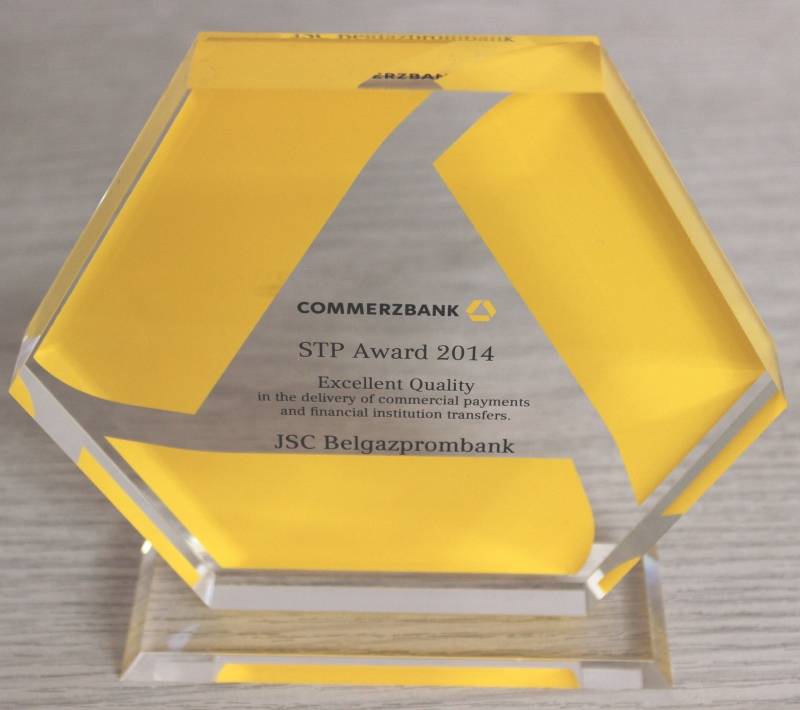 По итогам работы за 2014 год наградой STP Award был отмечен и удостоен ОАО «Белгазпромбанк». Согласно ежемесячным отчетам Commerzbank AG, уровень платежей ОАО «Белгазпромбанк», соответствуюший требованиям STP (Straight–Through Processing), достиг 100%.