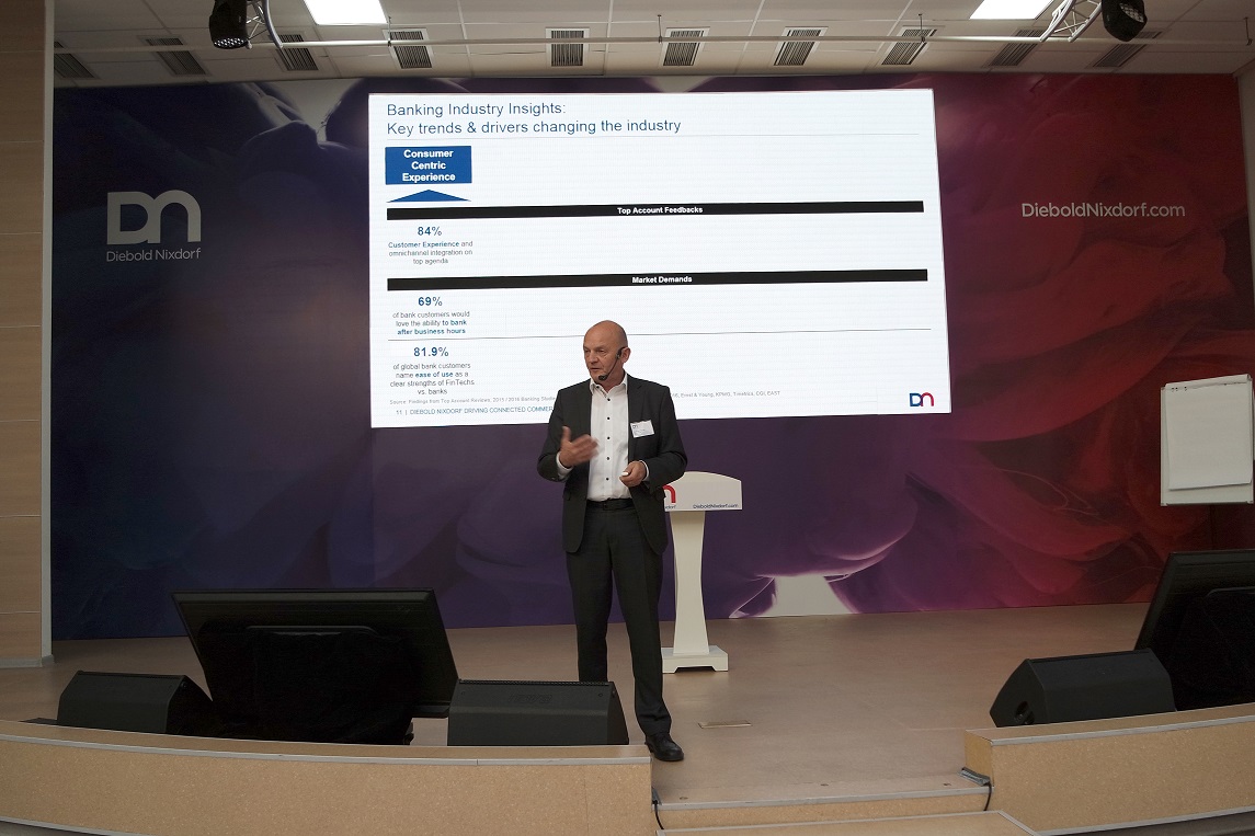 Joachim Struck, Vice President at Diebold Nixdorf CEE Partner Management, presented at the conference the latest trends in the financial industry. He emphasized that banks are interested in closer mutually beneficial cooperation with companies developing financial technologies.