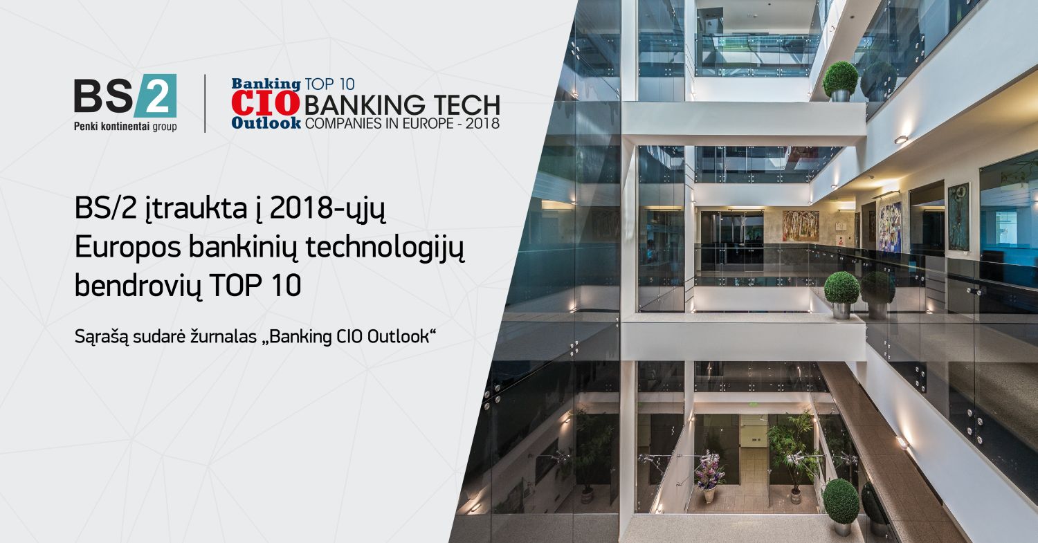 Tarptautinis žurnalas „Banking CIO outlook“ paskelbė įmonių grupei „Penki kontinentai“ priklausančią bendrovę „Penkių kontinentų bankinės technologijos“ (BS/2) viena iš dešimties geriausių 2018-ųjų Europos bankinių technologijų bendrovių.