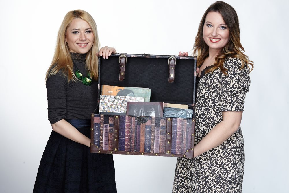 Laidos „Knygos per „Penki TV“ prodiuserė Julija Usova (k.) ir vedėja Aina Kirdulienė