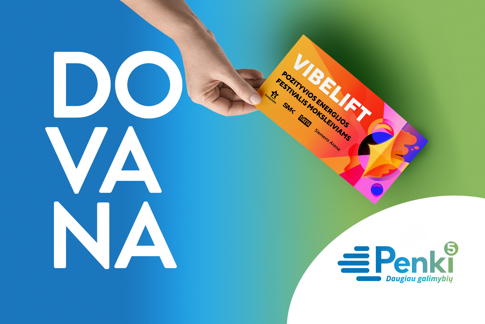 Šviesolaidinis tinklas „Penki“ padovanojo Vilniaus Vytauto Didžiojo gimnazijos vienuoliktokams bilietų į festivalį „Vibelift“, skirtą skatinti jaunimą aktyviau siekti savo tikslų ir tobulėti.