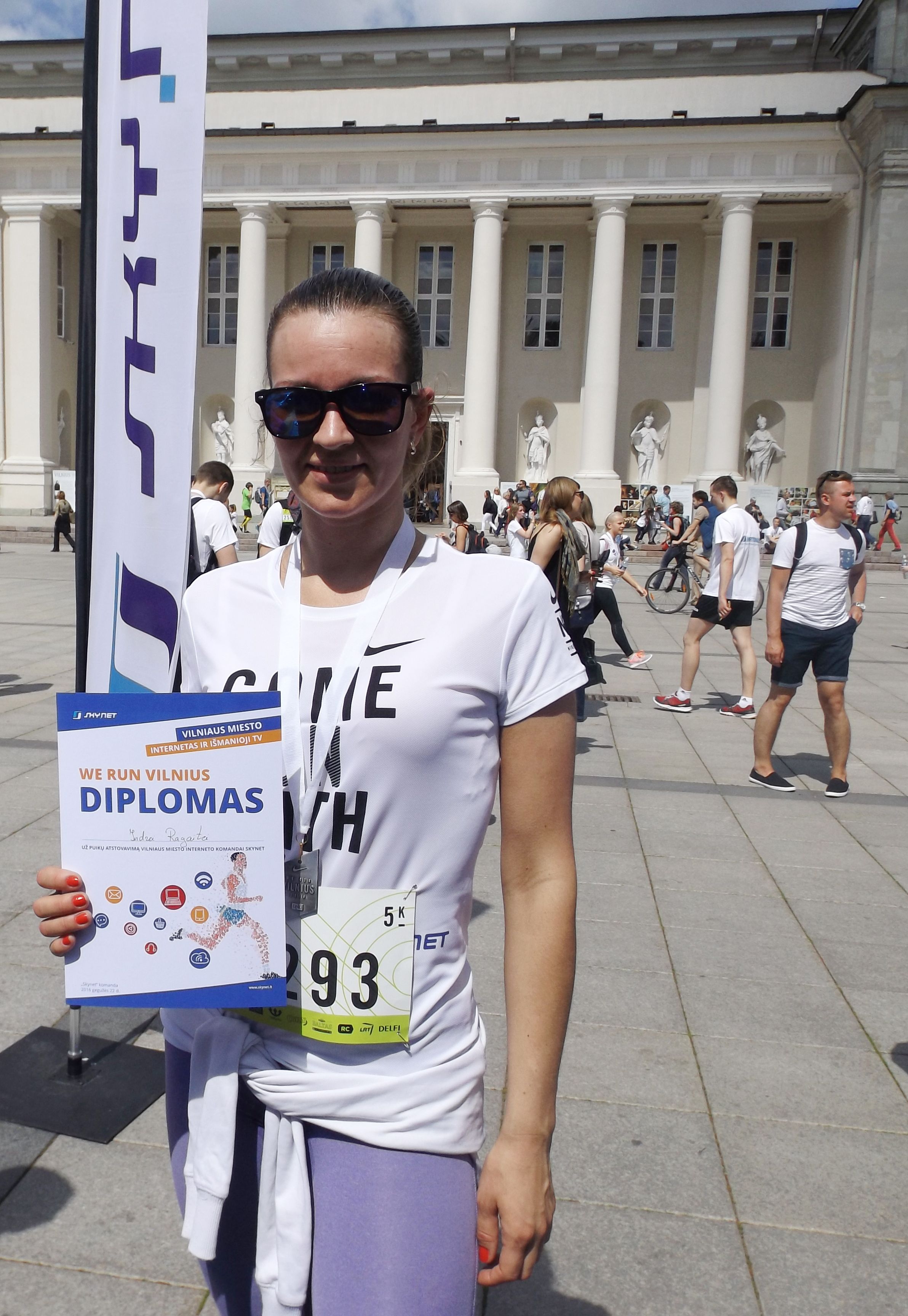 Prie „Skynet“ komandos prisijungusi klientė Vilma Budrienė, bėgimo varžybose dalyvaujanti antrus metus, į renginį įkalbėjo ateiti ne tik savo dukrą ir sūnų, bet ir kaimynų berniuką. Dukra išmėgino 350 m trasą, o berniukai – 5 km. Pati Vilma džiaugiasi 10 km trasą įveikusi per 57 minutes.