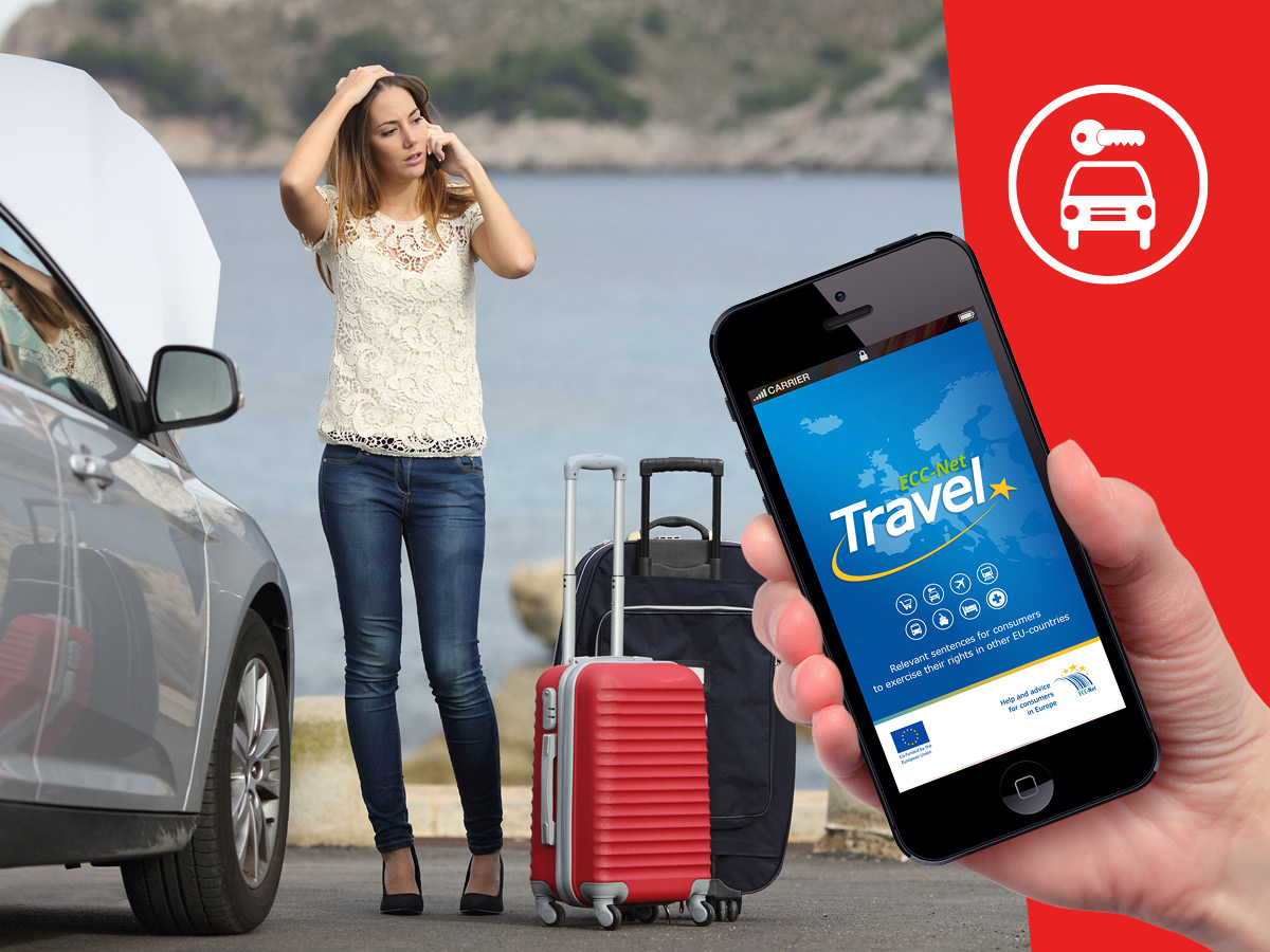 Įsivaizduokite, kad ką tik išlipote iš lėktuvo Romoje ir ginčijatės su automobilių nuomos kompanijos atstovu, nes Jūsų puikioji „Fiat Panda“ neturi oro kondicionieriaus, kurį užsisakėte internetu. Nesijaudinkite ir patikrinkite „ECC-Net: Travel“ mobiliąją programą, kad žinotumėte, kokias teises turite.