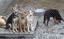 Dogs sit together in an enclosure at a private animal shelter in Pirogovo village outside the capital Kiev