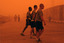 U.S. Army soldiers stroll through Forward Operating Base Warhorse as a sandstorm blankets Baqouba, capital of Iraq's volatile Diyala province