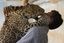 Zohra, a one-year-old female African leopard, plays with its zoo keeper (Jordan)