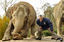 20-year-old- pregnant female elephant "Panang" stretches following instructions of her minder Andi Fries