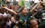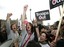 People cheer during a parade to celebrate South Africa's victory in the 2007 Rugby World Cup