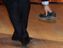 A security guard picks up a shoe that was thrown towards Chinese Premier Wen Jiabao at the University of Cambridge, eastern England