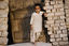 A Pakistani boy stands on the front step of his house
