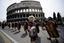By the Colosseum during a parade to celebrate the 2763rd anniversary of the legendary foundation of the city of Rome