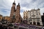 People watch the funeral procession for late Polish President Lech Kaczynski and his wife Maria in front of Mariacki Church in Krakow