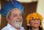 Brazilian President Luiz Inacio Lula da Silva with an indigenous child during a celebration for the American Indigenous People Day