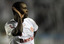 A Tibetan woman carries her child as she stands amid the ruins of their house in the quake-hit Gyegu town (China)
