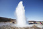 People look at a geyser in Geysir, Iceland April