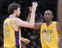 Los Angeles Lakers Kobe Bryant and Pau Gasol of Spain celebrate a basket against Oklahoma City Thunder during Game 5 of their NBA Western Conference playoff series in Los Angeles
