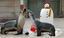 Australian sea lions Lexi (R) and Miya (L) compete for Christmas crabs at Taronga Zoo in Sydney
