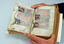 A manuscript dated 1200 is shown by a scientist after it was restored at the Central Institute for the Conservation and Restoration of Damaged Books in Rome