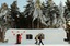 Tourists walk past a coffee shop covered by shaped snow ahead of the 13th Harbin Ice and Snow World in Harbin