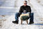 Steffen and his son Nils sledge down a hill in Donnstetten, southern Germany
