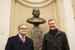 Vilniaus centre, prie Lietuvos banko pastato, iškilmingai atidengtas paminklas pirmajam Lietuvos banko valdytojui Vladui Jurgučiui. skaityti »