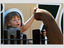 Pasaulyje žinomo „krokodilų gaudytojo“ Stivo Irvino (Steve Irwin) dukra žaidža su dramblio straubliu per pamaldas, skirtas jos mirusiam tėčiui.