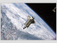 Tai NASA nufotografuotas kosminis keltas „Atlantis“, skriejantis virš Žemės.