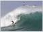 Brazilijos banglentininkas Carlos Burl plaukia per milžininšką bangą, tuo pačiu metu virš bangos skrenda malūnsparnis (Japonija).