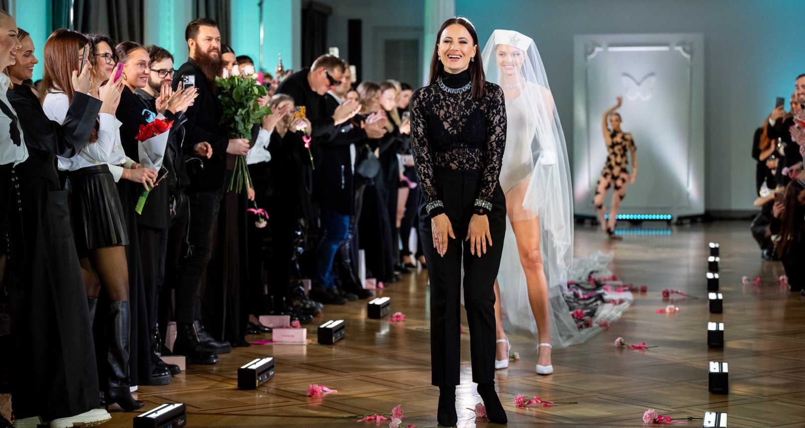 Šią mintį atspindėjo ir šou pradžia – virpančių drugeli apsupta balerina Evelina Fokina milžinišku pieštuku piešė eskizus, kurie po akimirkos atgijo į sceną įžengusiais modeliais, dėvinčiais naujosios kolekcijos drabužius. Baleto etiudą parengė Baltijos baleto teatro režisierė Marija Simona Šimulynaitė.