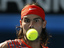 Испанский теннисист Рафаэль Надаль замер в ожидании мяча