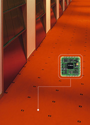 Максимальная плотность размещения чипов — 25 штук на кв метр. Для электропитания этого метра в настоящее время ковру требуется 2,5 ватта. Один центральный компьютер способен контролировать 100 кв метров ковра.